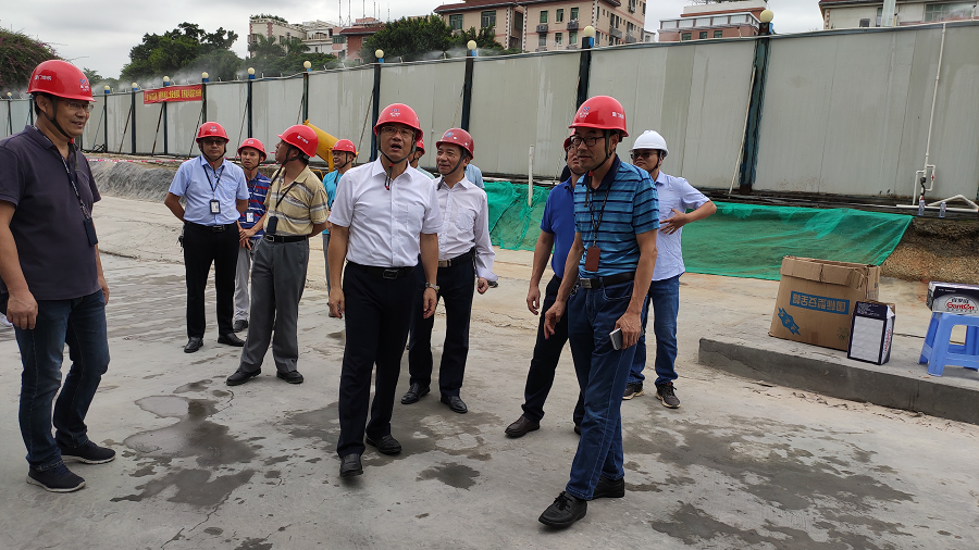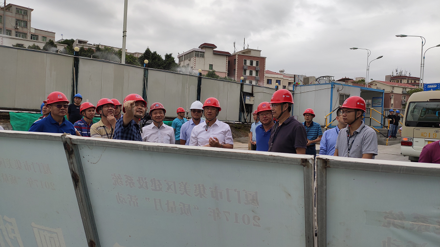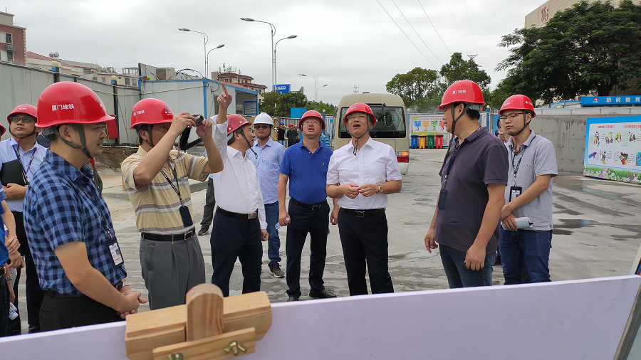 2020年9月28日上午 9時(shí)許,廈門軌道集團(tuán)董事長(zhǎng)王文格,黨委書(shū)記張建軍,集團(tuán)分管領(lǐng)導(dǎo)張大成,分公司總經(jīng)理陳曉堅(jiān)等領(lǐng)導(dǎo)一行對(duì)我司監(jiān)理的軌道1號(hào)線火炬園站地塊配套項(xiàng)目施工現(xiàn)場(chǎng)調(diào)研指導(dǎo)。我司黨支部書(shū)記、總經(jīng)理林金錯(cuò),項(xiàng)目總監(jiān)理工程師黃身州全程陪同調(diào)研。
