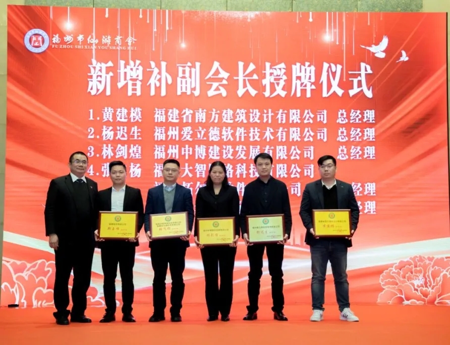 郭建濤會長向新增補的副會長黃建模、楊遲生、林劍煌、張飛楊、鄭玉峰授牌
